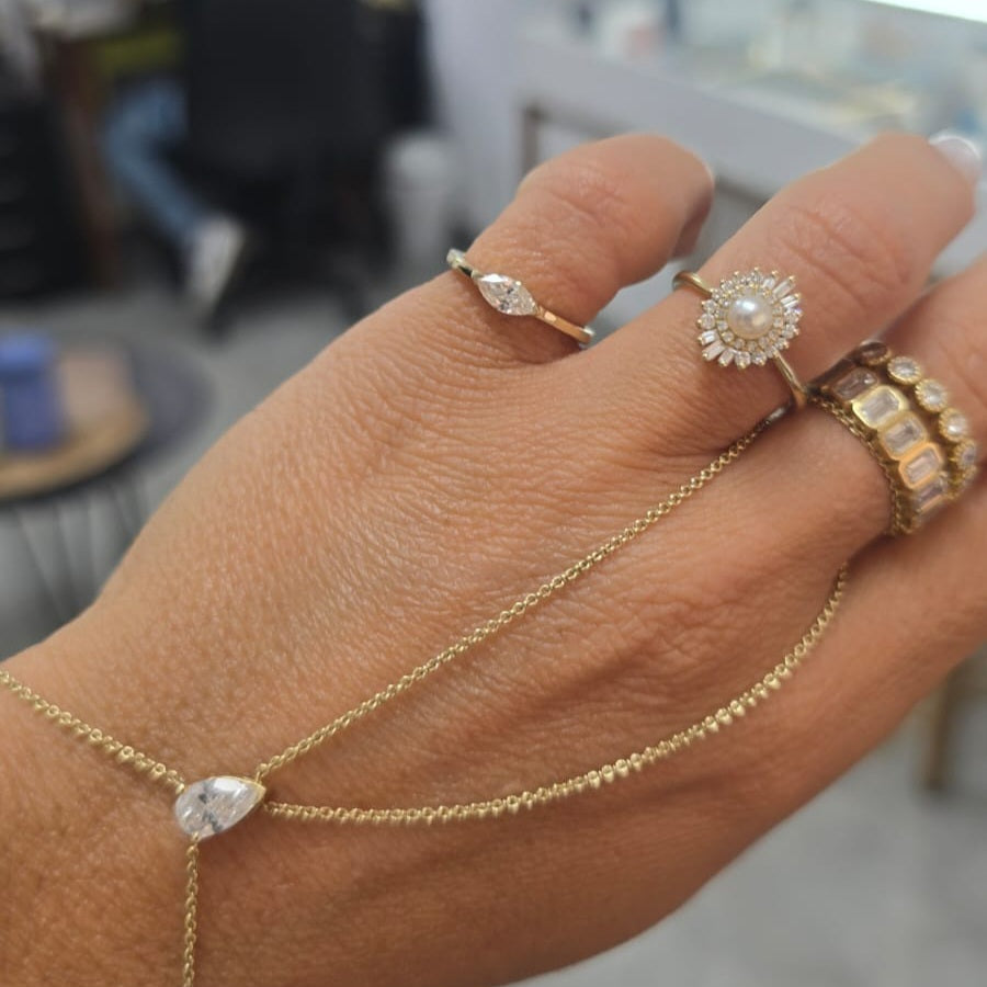 הפרופורציות המדויקות והבסיס המינימליסטי מדגישים את צורת האבן ומעניקים לטבעת מראה יוקרתי, מודרני והרמוני על היד.