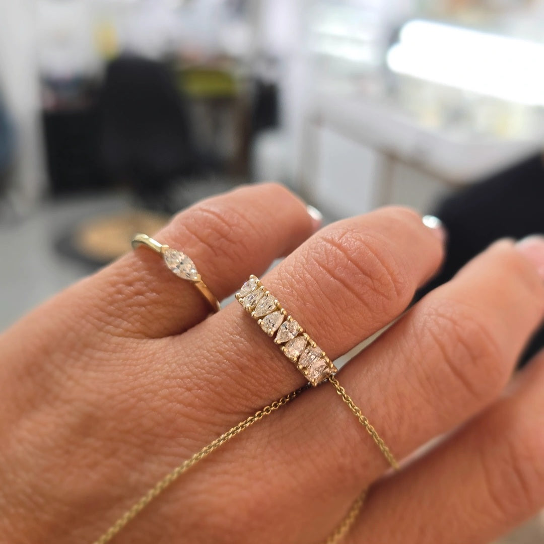 זו טבעת שמרגישה הרמונית עיצוב מדויק שמבליט את היופי של כל אבן ומוסיף עדינות יוקרתית שכל יד נהנית ממנה.